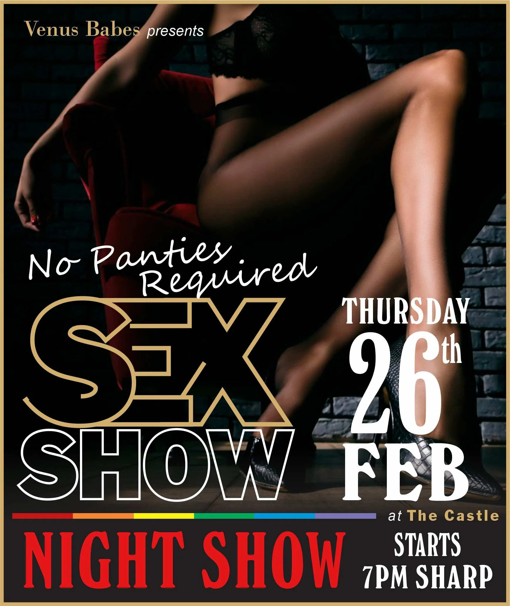 All live shows take place at Venus Babes, 41 Downard Street, Braeside VIC, in Melbourne’s south-east.